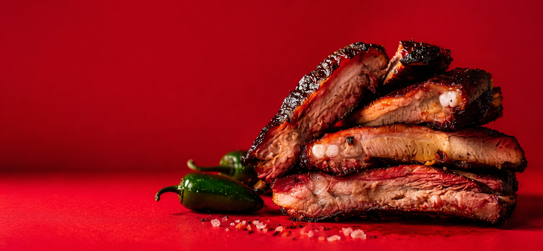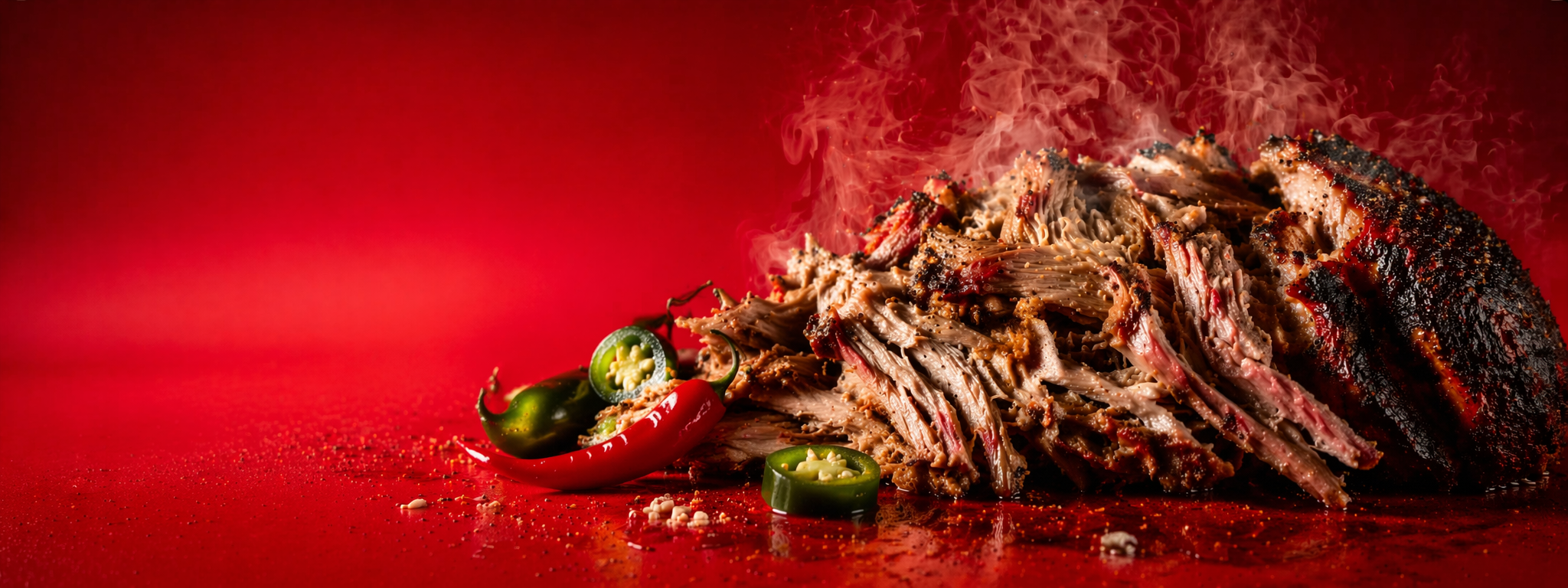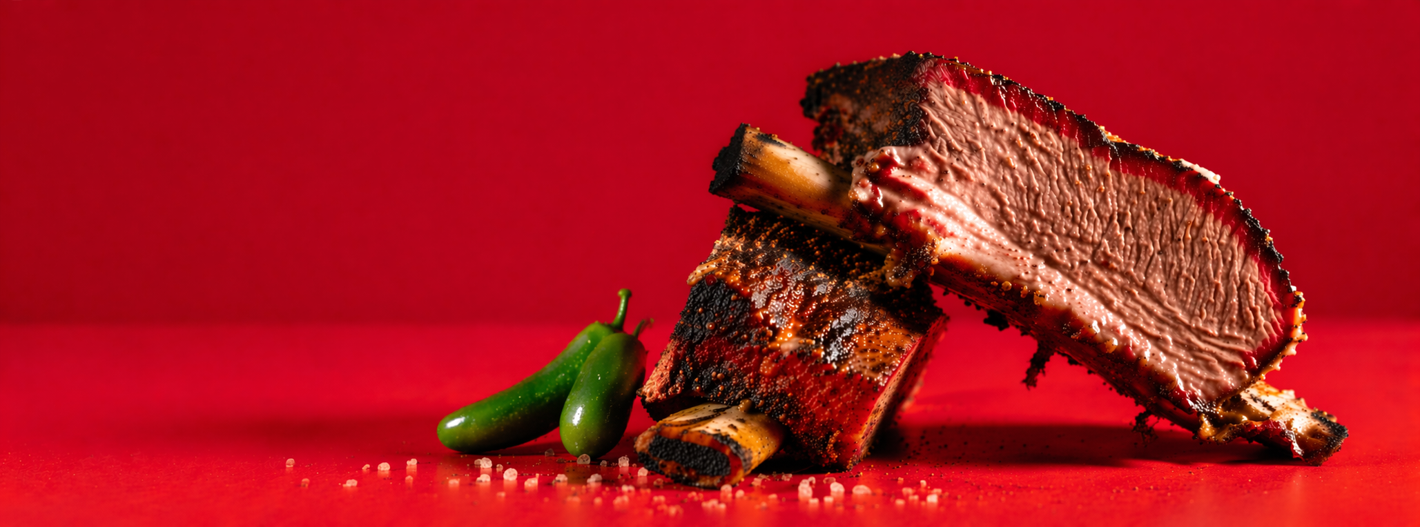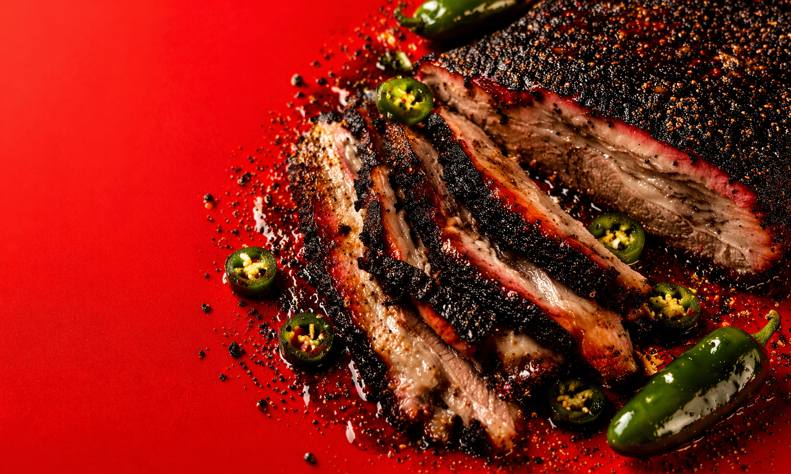 德州煙燻烤肉(Texas BBQ)講究「低溫慢燻」,以原木(我們使用的是龍眼木和荔枝木)長時間燻烤,讓肉質在穩定溫度中慢慢熟成。呈現出黑色的風味外皮(Bark)及粉色的煙燻環,油脂緩緩融化、纖維逐漸鬆軟,最後呈現出外酥內嫩、多汁飽滿的經典口感,並帶有濃郁自然的木質煙燻香氣。